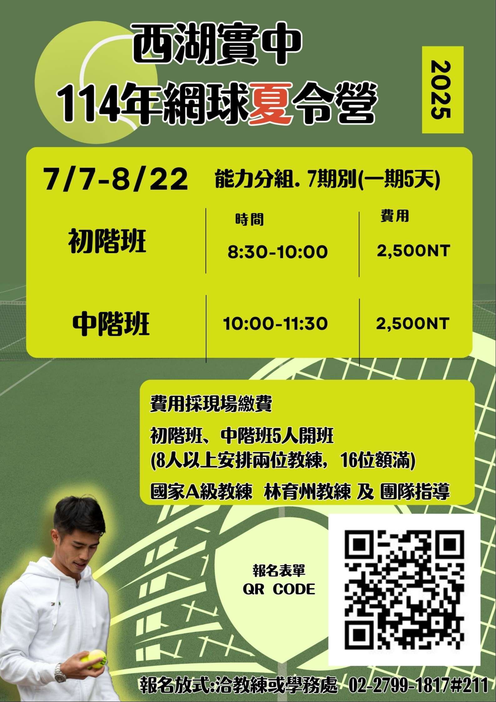 二、檢附本校114年度網球夏令營活動實施計畫暨報名表1份。