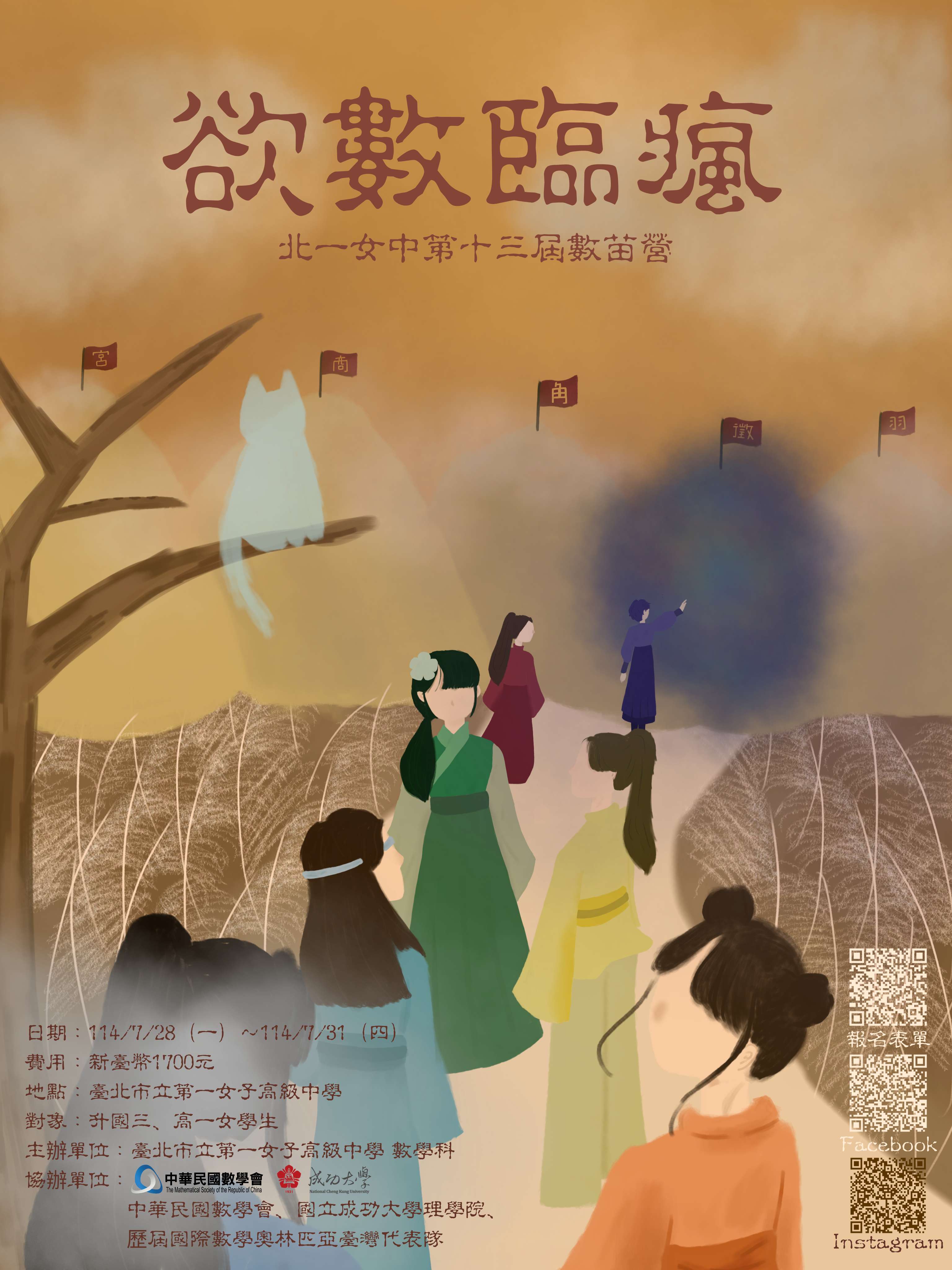 五、活動詳情及報名資訊,請至Facebook粉絲專頁「北一女中數苗營」(www.facebook.com/tfgmathcamp)或Instagram:tfgmathcamp查詢。
