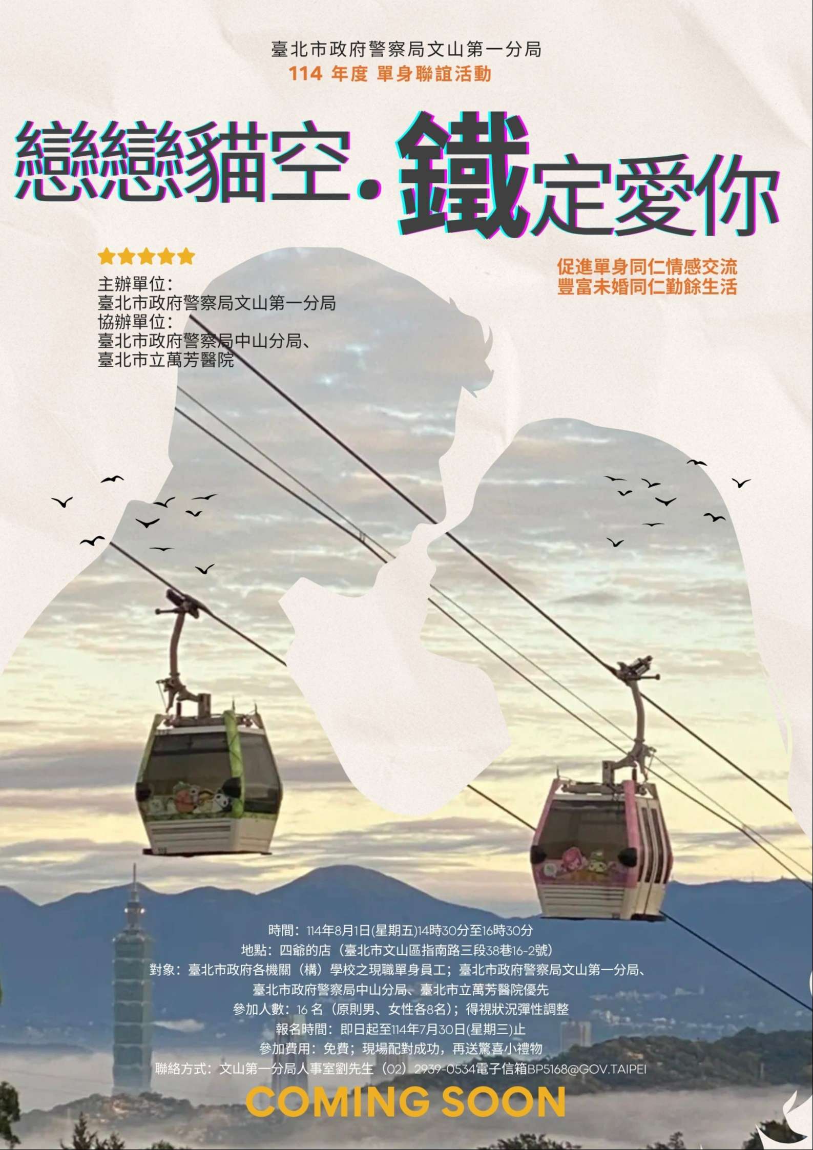 (三)對象:臺北市政府各機關(構)學校之現職單身員工;臺北市政府警察局文山第一分局、臺北市政府警察局中
