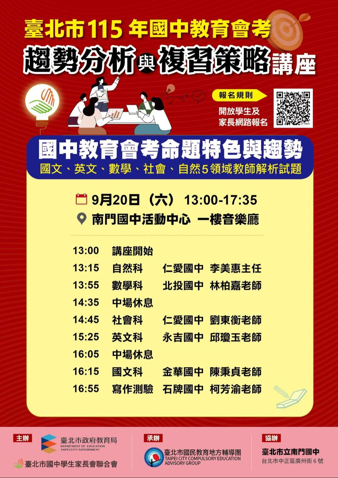 (五)報名方式:由臺北市國中學生家長聯合會負責,請於114