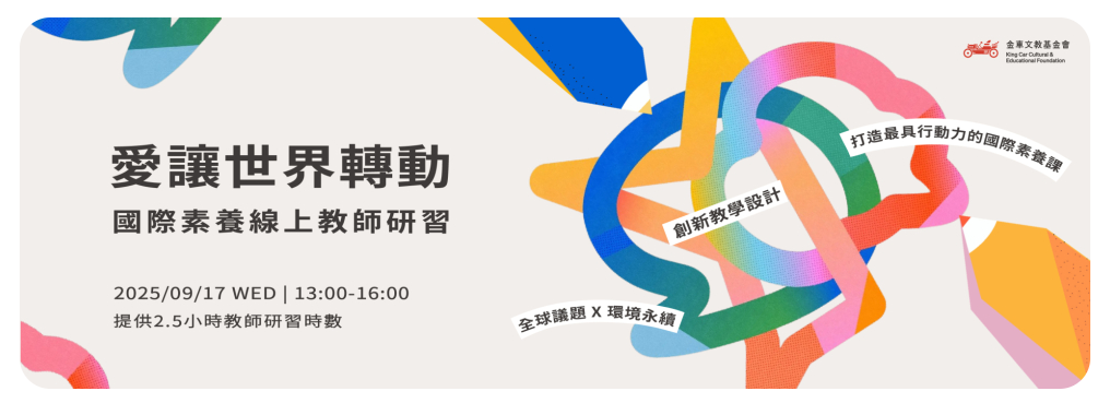 面對世界的快速變遷,該如何從「學習」走向「行動」,讓教室與世界接軌?金車文教基金會長期推動「愛讓世界轉動」計畫,鼓勵老師陪伴孩子以國際視野、在地行動,走出教室落實社會關懷。本次課程將結合全球議題、環境永續與創新教學,從議題探究到行動實踐,與您一同探索如何透過教學設計與課堂轉化,連結全球與在地重要永續議題,打造有感的學習氛圍,攜手孩子走進地方、擁抱全球,培養下個世代成為具備改變世界勇氣與使命的世界公民。