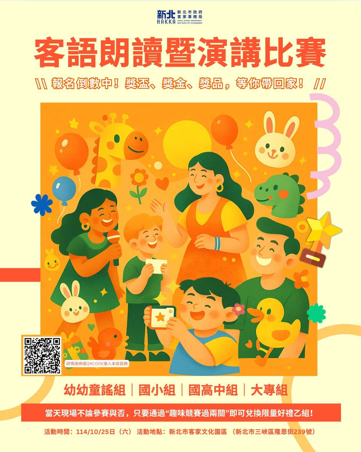 (二)比賽地點:新北市客家文化園區(新北市三峽區隆恩街239號)。