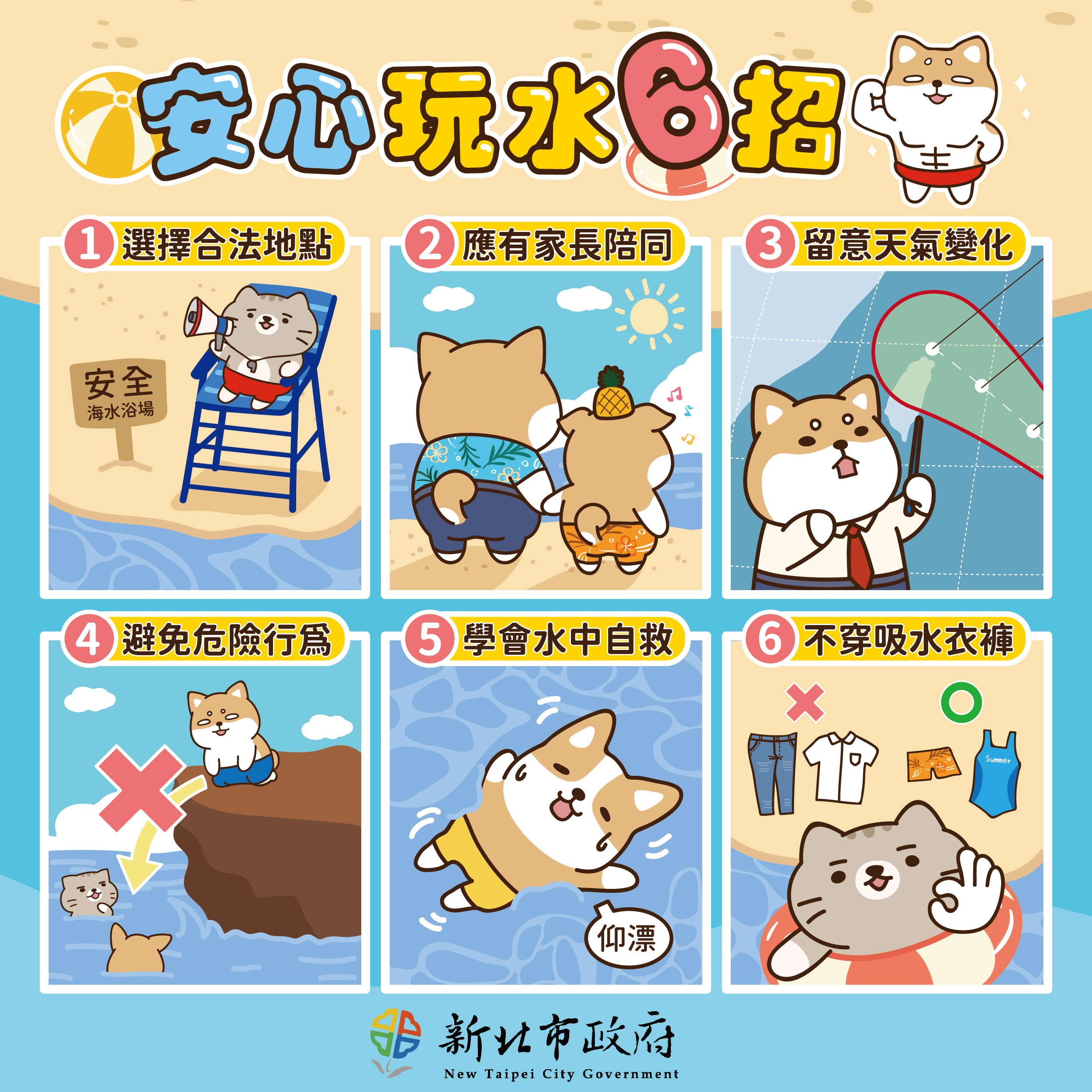 請參考下方消防署、新北市教育局製作之宣導文件,出門遊玩之餘留意自己的戲水安全!