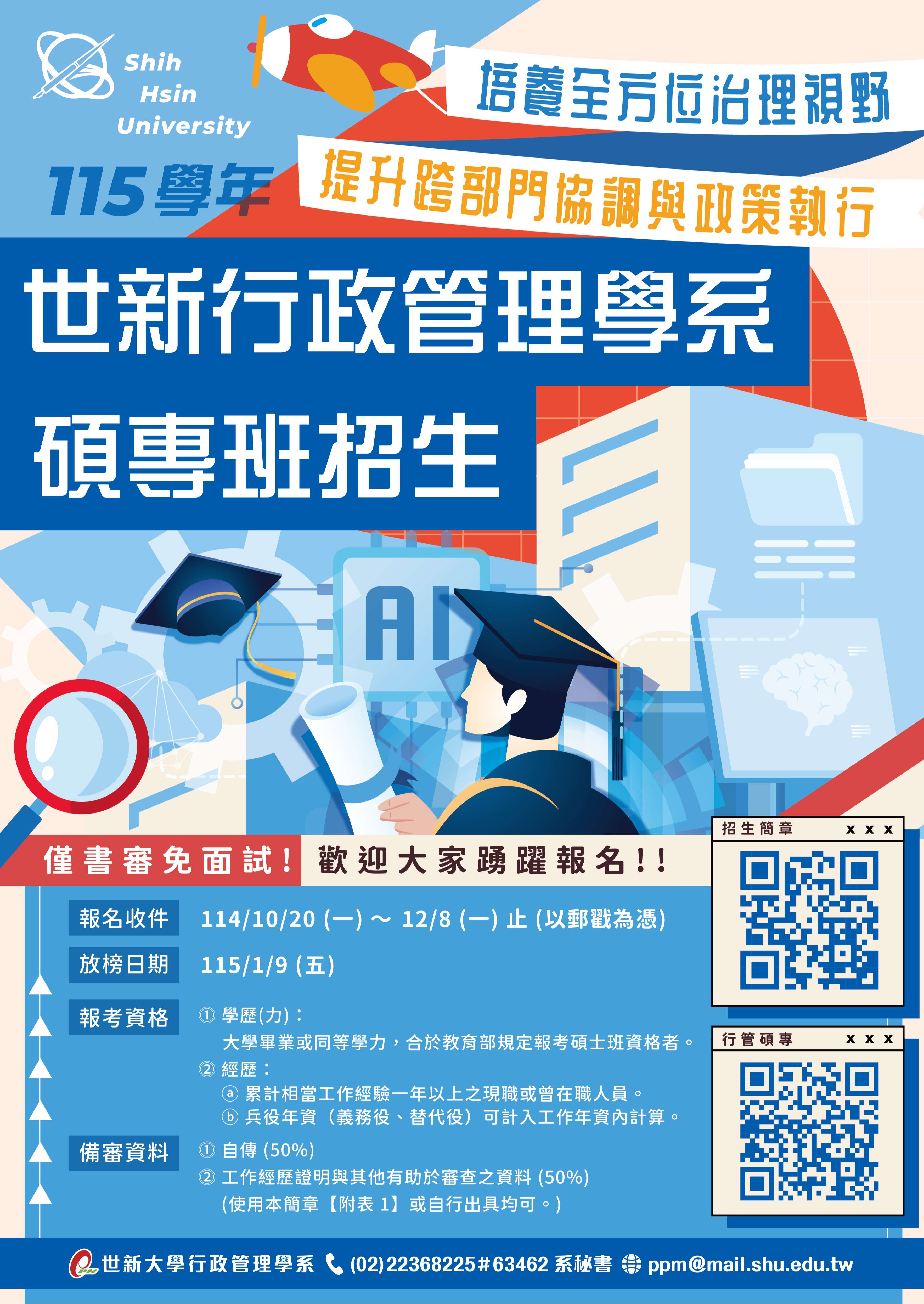 一、本校行政管理學系碩士在職專班,課程設計兼具理論與實