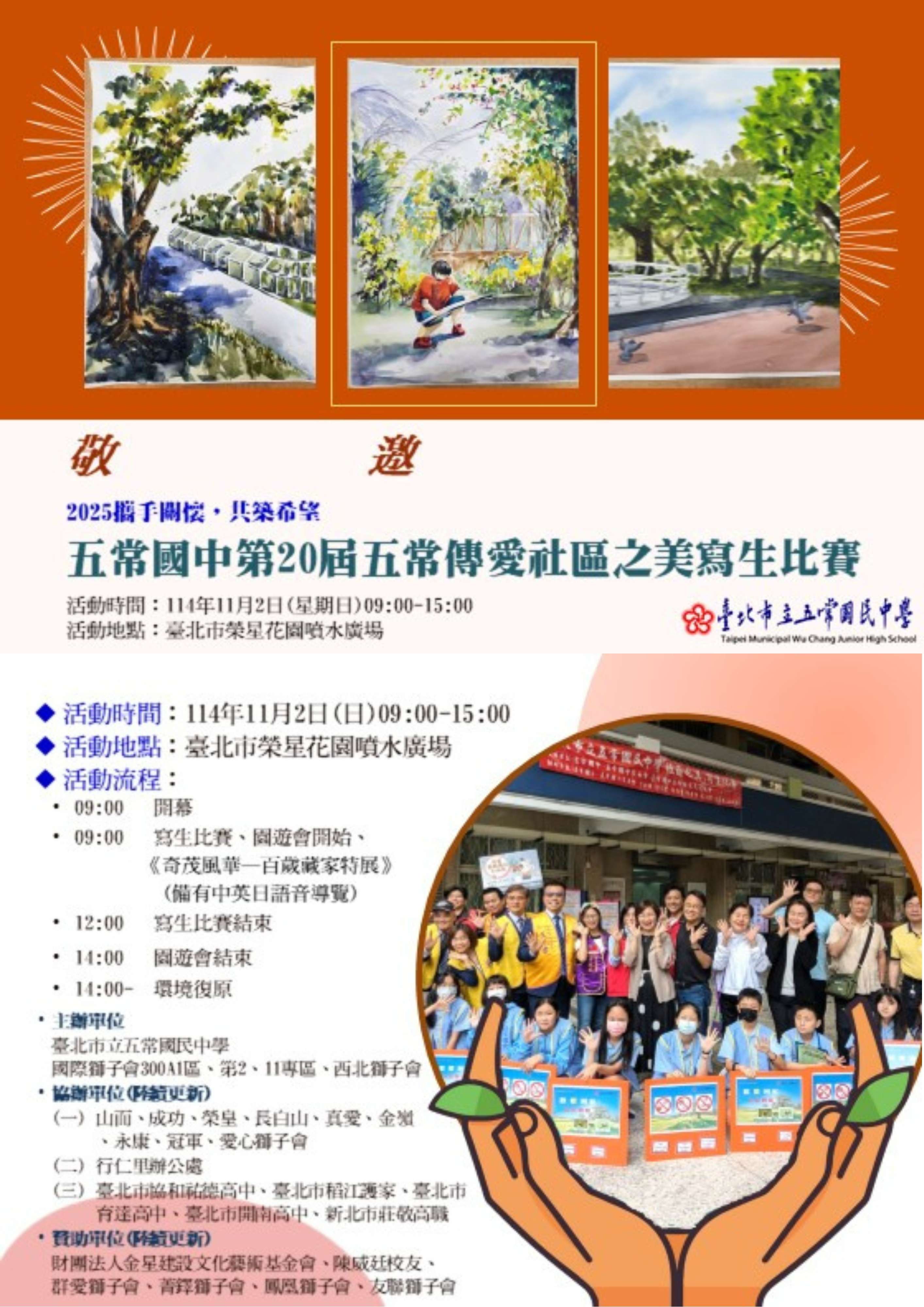 轉知:臺北市立五常國民中學「114學年第20屆五常傳愛社區之美寫生比賽」活動
