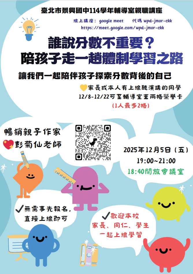 線上講座:google meet 代碼 wpd-jmor-ckk