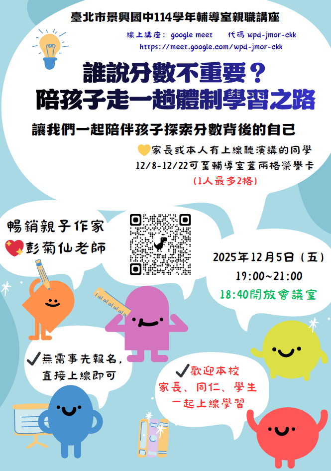 線上講座:google meet 代碼 wpd-jmor-ckk