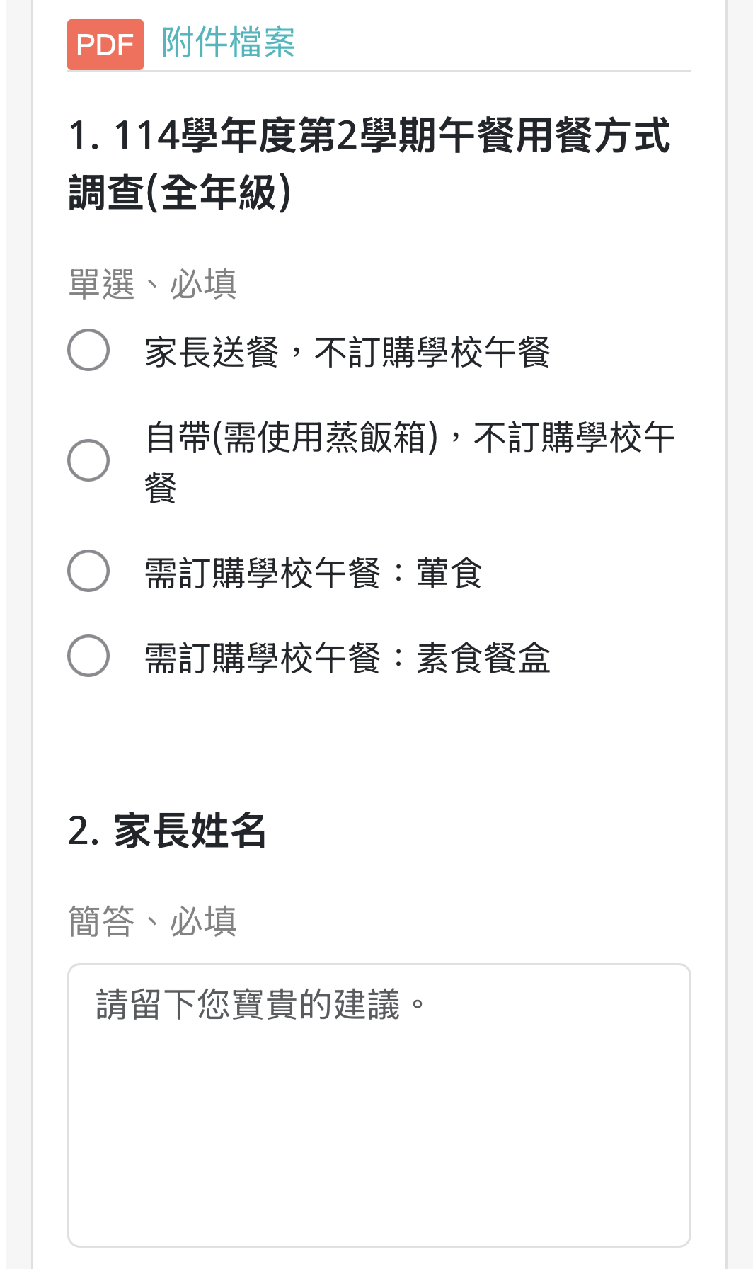 ★備註:1.全年級學生不論訂購與否「皆需填寫」本調查表!