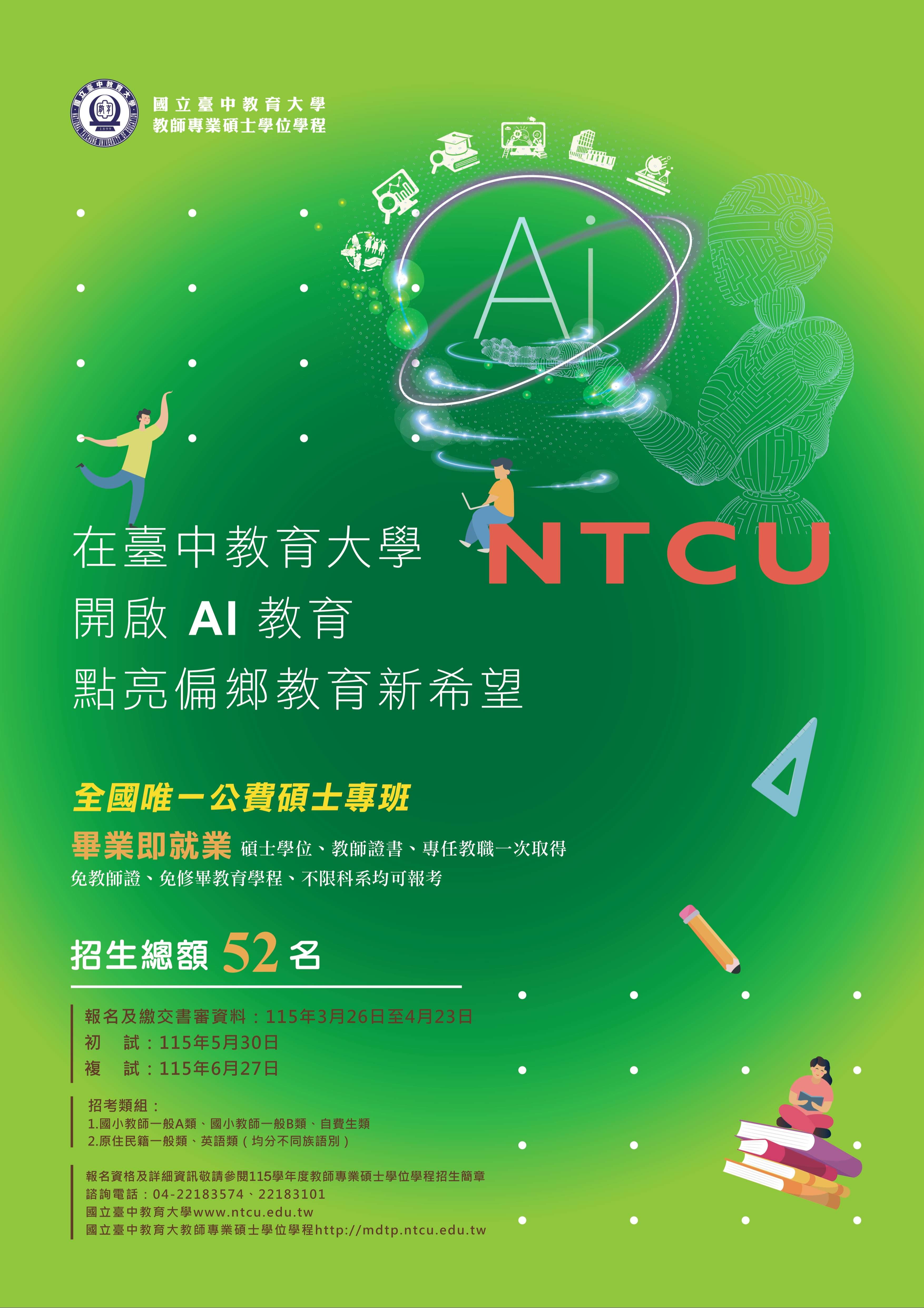一、本校教師專業碩士學位學程為碩士公費師資專班,教師證