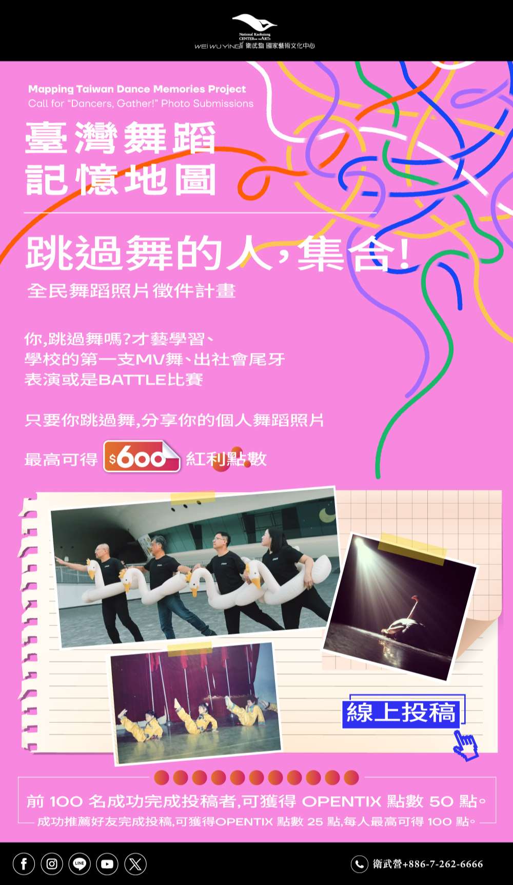 轉知:國家表演藝術中心衛武營國家藝術文化中心辦理「臺灣舞蹈記憶地圖」計畫115年度「2026舞蹈書寫工作坊」及「跳過舞的人,集合!」全民舞蹈照片徵件活動